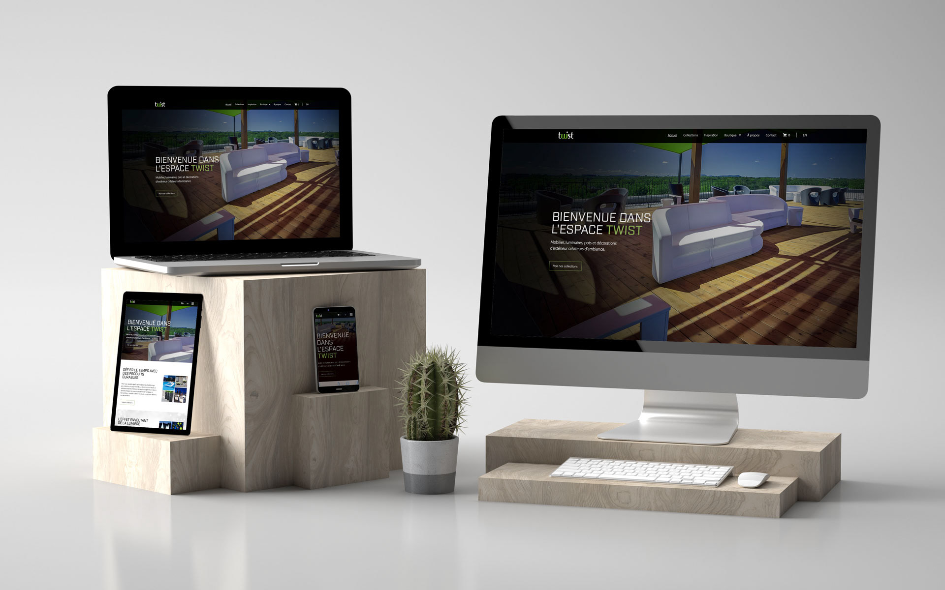 Mobilier, luminaires, pots et décorations d’extérieur créateurs d’ambiance. - BOUTIQUE TRANSACTIONNELLE - - DESIGN WEB -